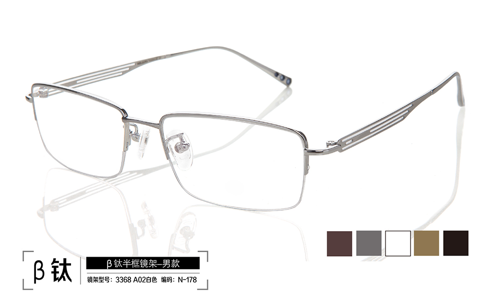 鏡架系列:β鈦半框鏡架 名稱:β鈦半框鏡架 型號(hào): 3368 A13 古銅色;3368 A03 灰色;3368 A02 白色;3368 A01 金色;3368 A04 黑色 編號(hào): N-168;N-177;N-178;N-179;N-180 |
